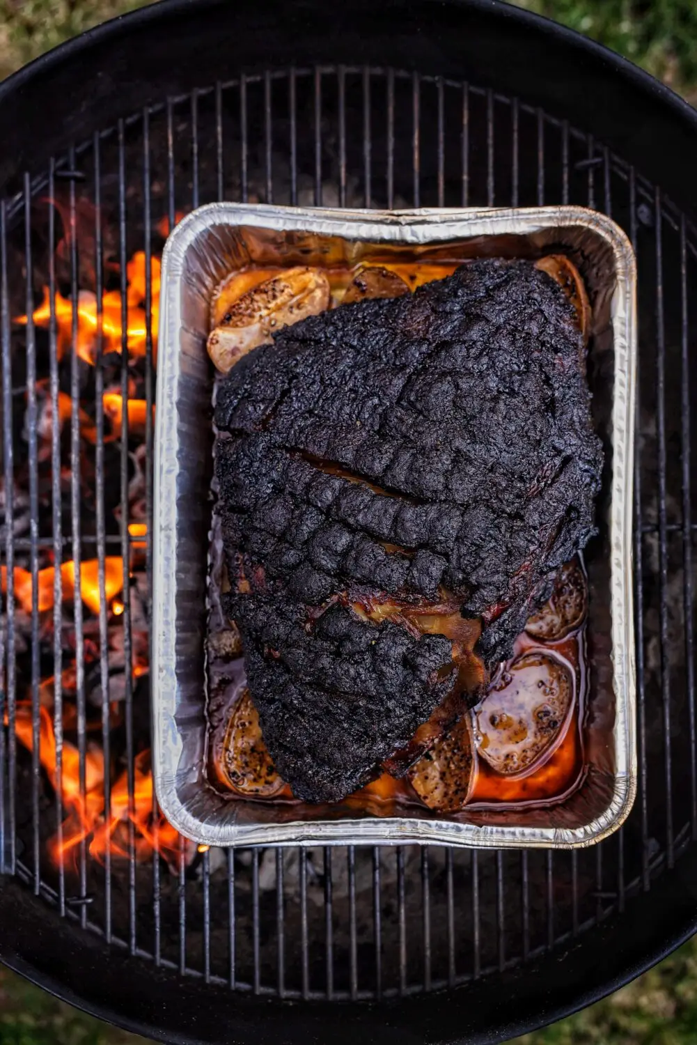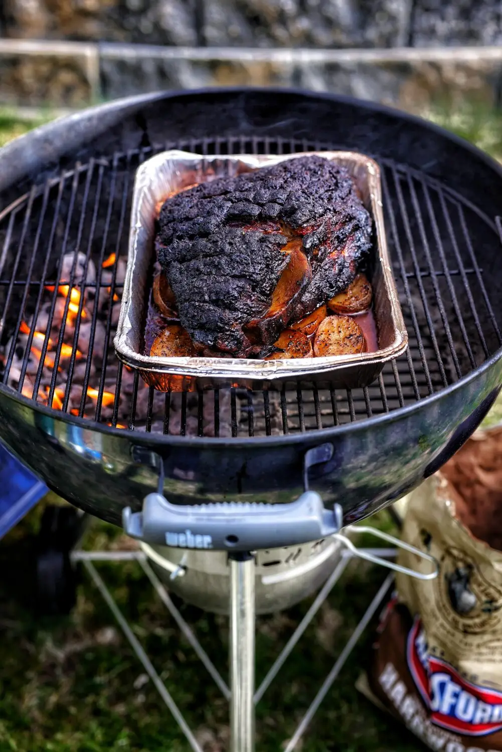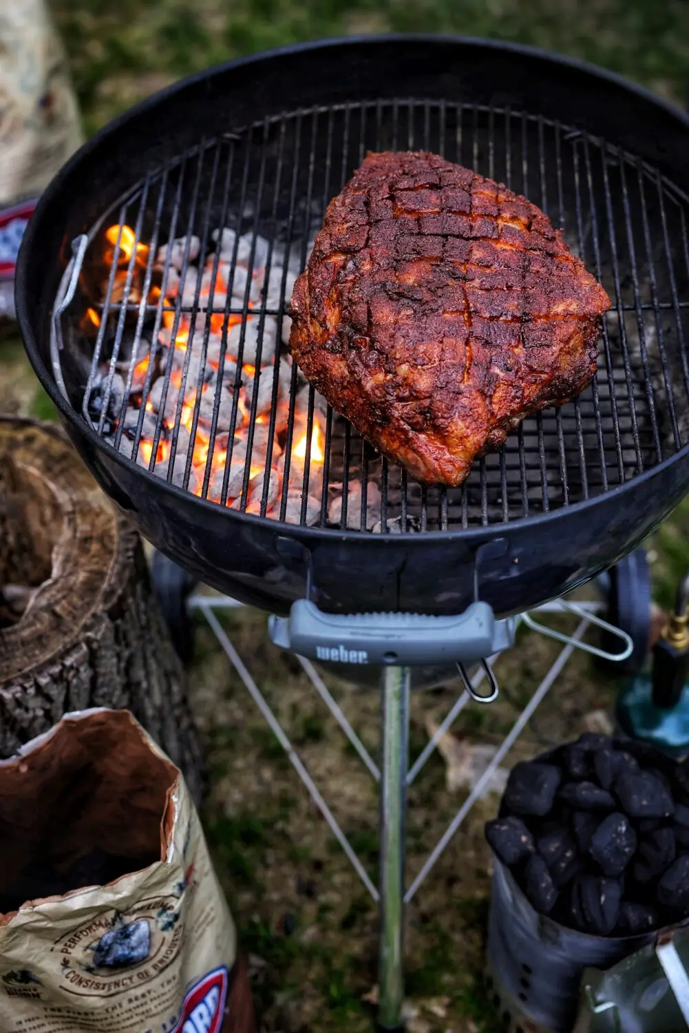 Ah, the trusty Weber kettle grill, our gateway to smoky paradise! Set the stage for barbecue brilliance by arranging a two-zone fire. Pile those Kingsford charcoal briquettes on one side of the grill, creating a symphony of direct and indirect heat. Place a drip pan filled with water beneath the indirect heat zone to capture those succulent drippings and keep the pork shoulder moist throughout its transformation. Every 60-90 minutes, add a half chimney of charcoal to keep temperatures consistent.