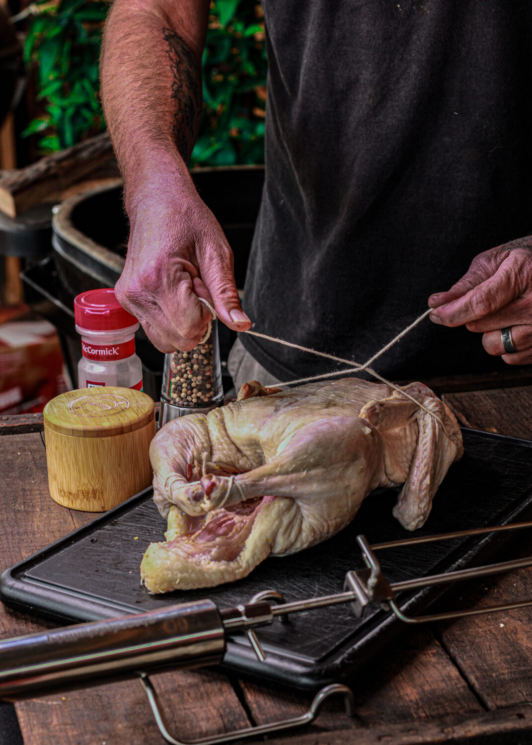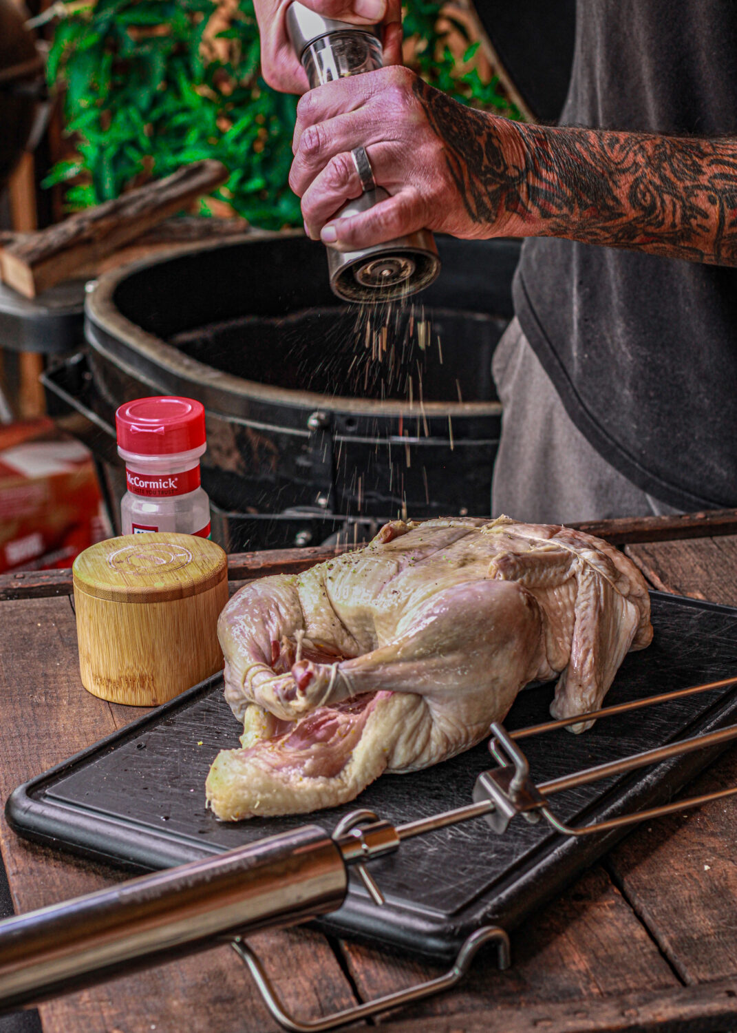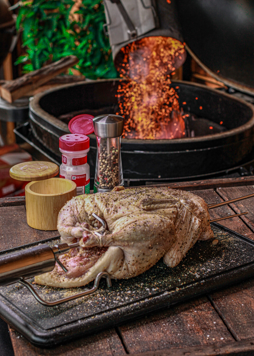 Next, we tackle the challenge of perfecting that tantalizingly crisp skin. We’ll dry it out to ensure a heavenly balance between tenderness and crunch. But wait, there’s more! We’ll also conquer the issue of excess fat, leaving you with a rich, juicy treasure. And then, my friends, we shall embark on the grand finale – the moment you’ve been waiting for – cooking this Bad Boy over live fire!